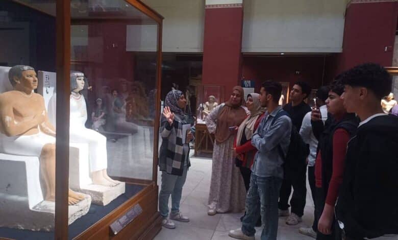 في إطار الاحتفال بـ اليوم العالمي للتراث، استقبل المتحف المصري بالقاهرة متمثلاً في القسم التعليمي بالمتحف جولة تثقيفية وفنية موسعة لرواد “جمعية مصر للثقافة والتنمية بحلوان”، وذلك ضمن برامج وزارة الثقافة والهيئة العامة لقصور الثقافة لتعزيز الانتماء الوطني ورفع الوعي الأثري لدى النشء والشباب.
