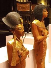 في الطريق يقبع ثمثال آمون إردي من العصر المتأخر، ومنه الي قاعة الملك توت عنخ آمون الذي أبهر جميع قادة العالم، ولأول مرة تعرض كل كنوز توت عنخ أمون الذهبية في مكان واحد، ومنها آثار تعرض للجمهور لأول مرة، ومنها عدد ال ٦ عجلات الحربية الخاصة بالملك توت عنخ آمون، وكان هناك سير يلف حول العجل والرمان بلي الذي استعملهم المصري القديم لأول مرة في التاريخ، وشاهدوا أيضًا الثلاث توابيت للملك، ومنهم القناع الذهبي الذي يصل وزنه إلي١١٠ كيلو ذهب صافي، ثم شاهدوا الأربع مقصورات المذهبة الخاصة بالملك توت عنخ آمون.